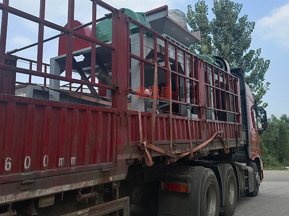 這是一臺(tái)內(nèi)蒙古客戶訂購的1000型雙軸撕碎機(jī),客戶是用來處理鋼廠淘汰下來的除塵布袋,這套設(shè)備帶有分選裝置,可以將除塵袋撕碎料中的鐵片分選出來,分別回收利用。